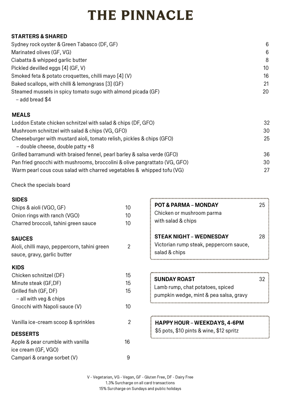 $5 pots, $10 pints/wine, $12 spritz